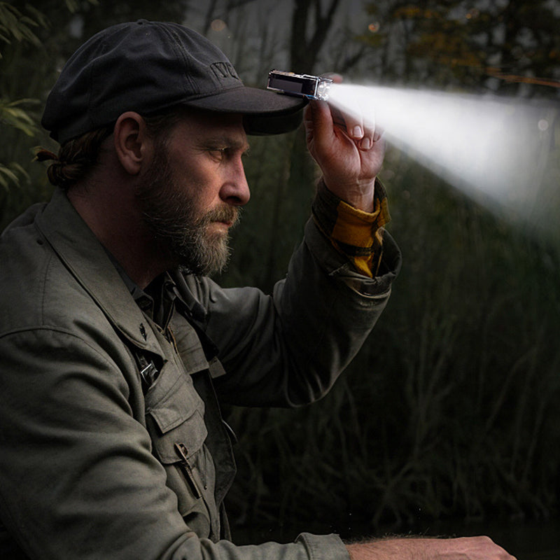 LIGHTWEIGHT & ERGONOMIC DESIGN: Weighing only 56g, this headlamp is comfortable to wear for hours on your head or cap without causing fatigue. Its rotatable light body offers 180° angle adjustment, and the IPX-rated waterproof design ensures reliable performance in humid or rainy conditions.