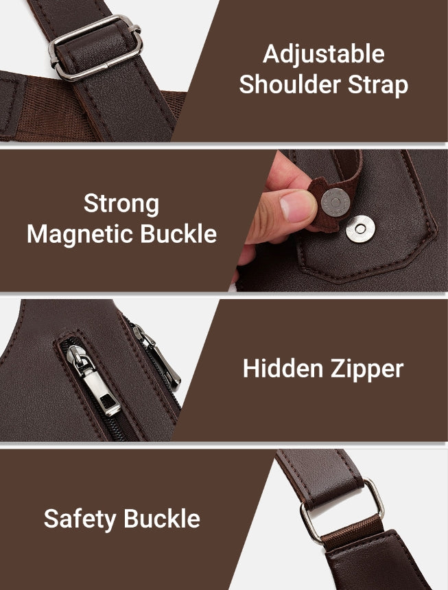 DURABLE MATERIAL: Crafted from high-quality, water-resistant PU leather, this bag is built to withstand rugged conditions and protect your belongings from the elements, ensuring long-lasting durability.