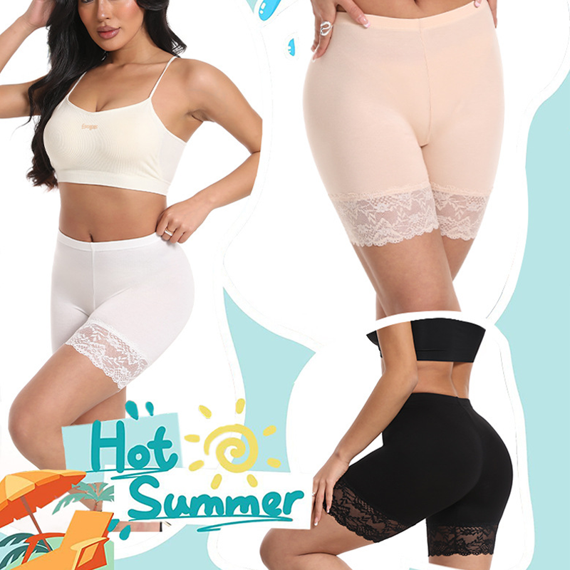 🎊Comfortable plus size 🎊Tight-Fit Lace Trim Safety Shorts