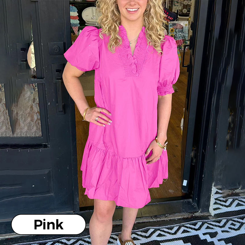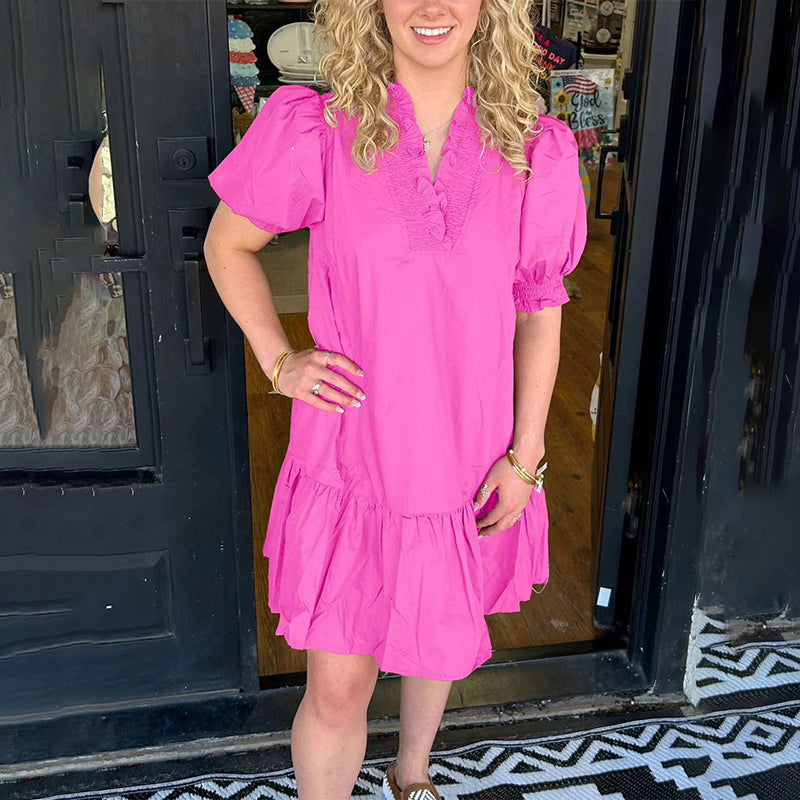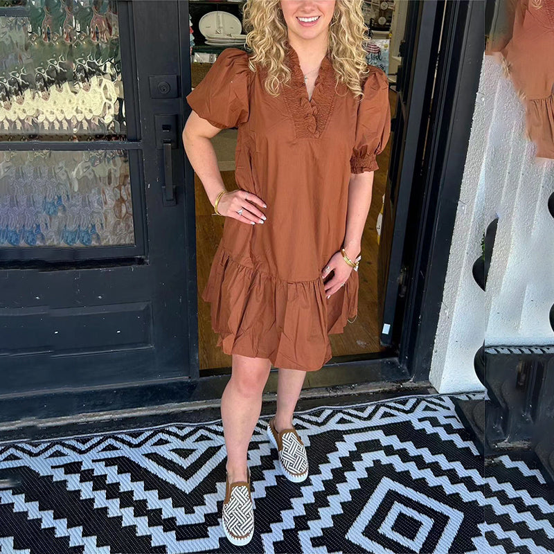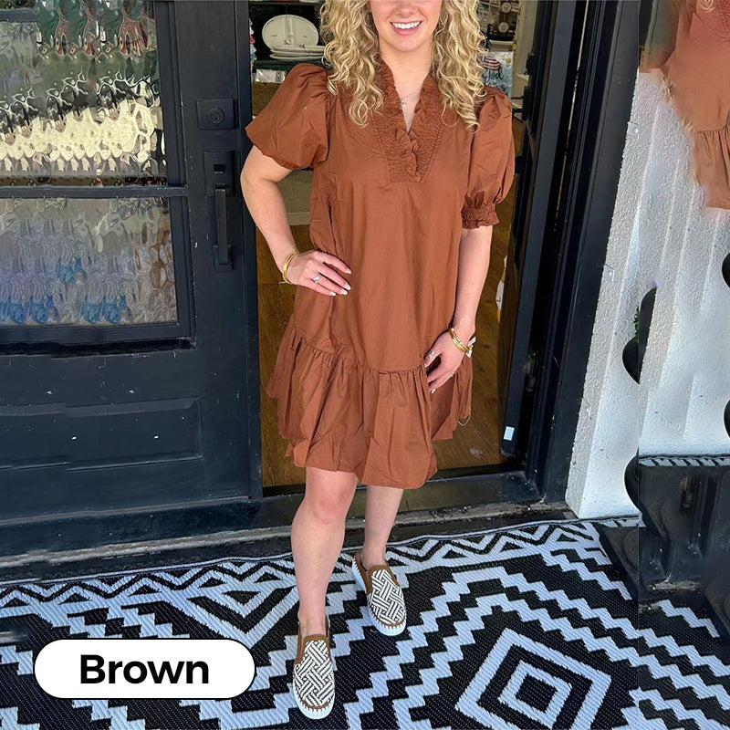 PLAYFUL RUFFLE HEM -The ruffle hem adds a touch of playful elegance and movement, making the dress ideal for a casual yet stylish look perfect for daily wear.