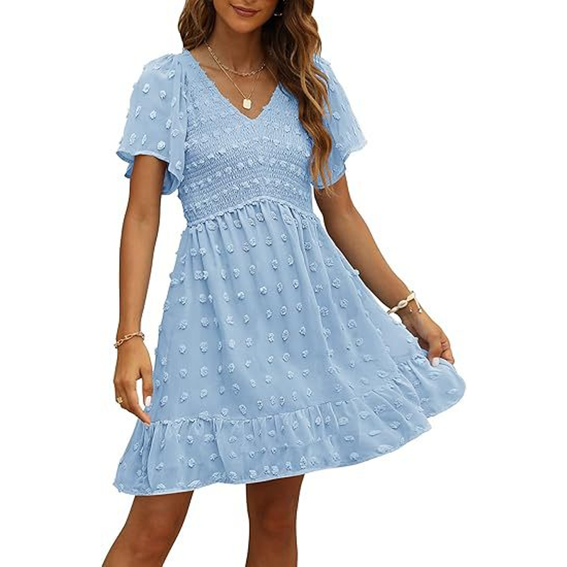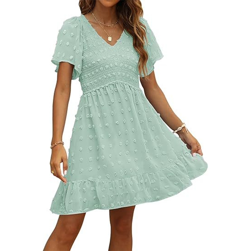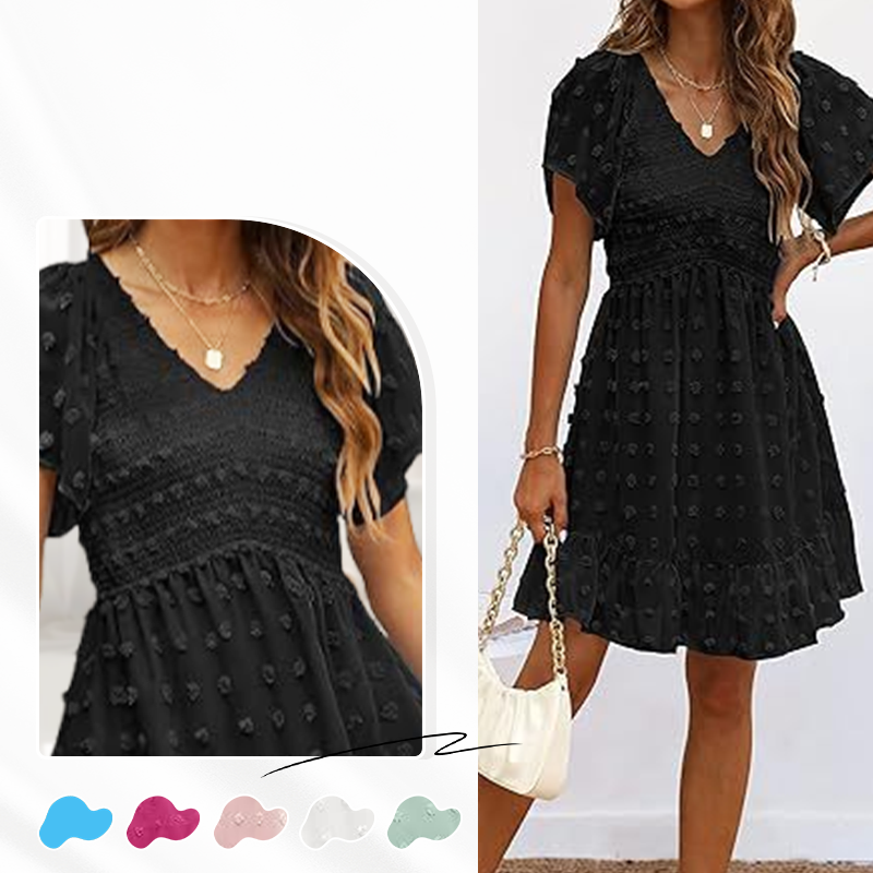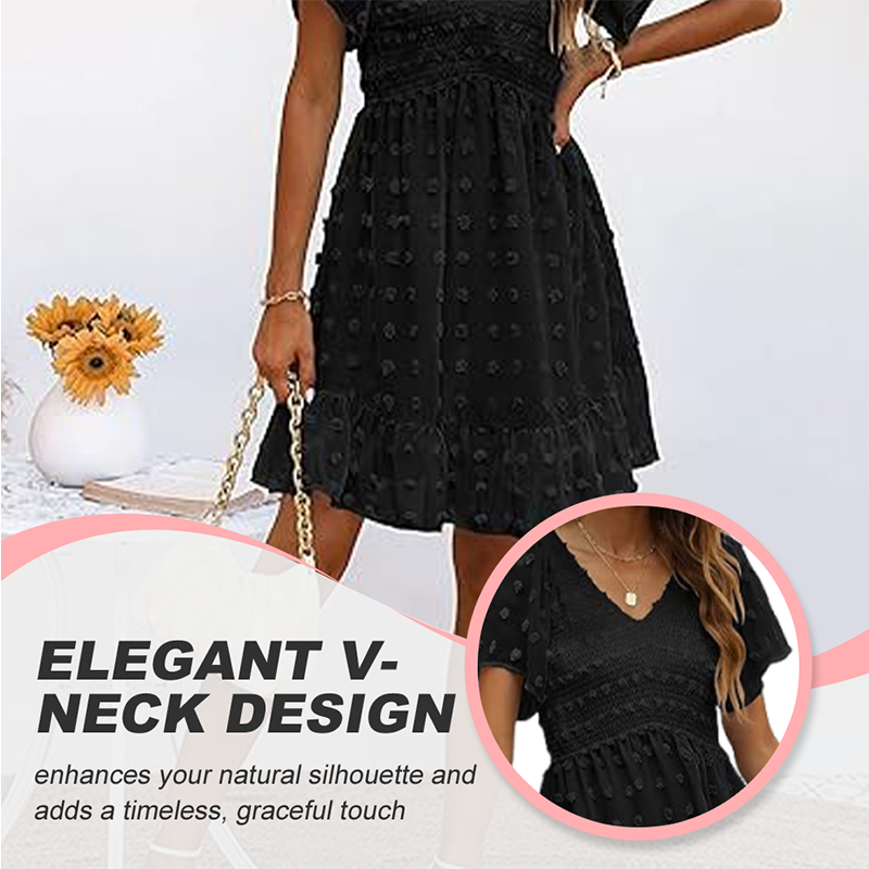 🎉🛍️Summer New Arrivals👗V-neck Slim Fit Short Sleeve Chiffon Dress