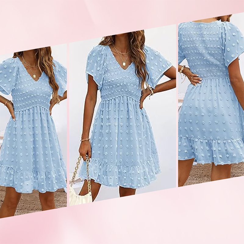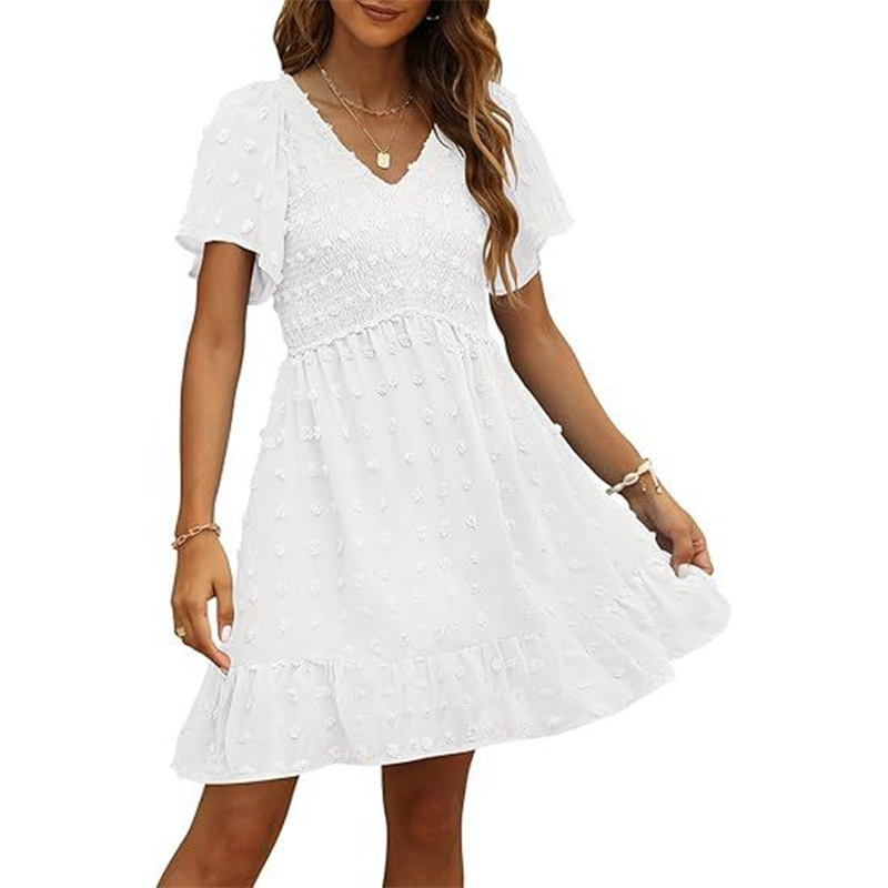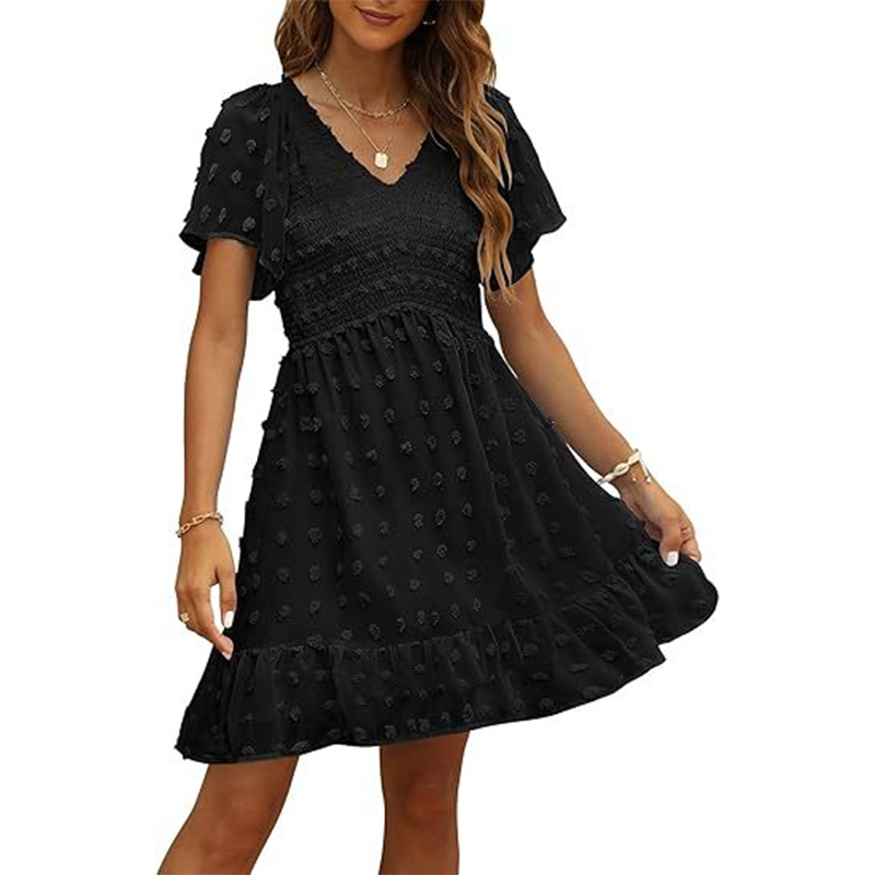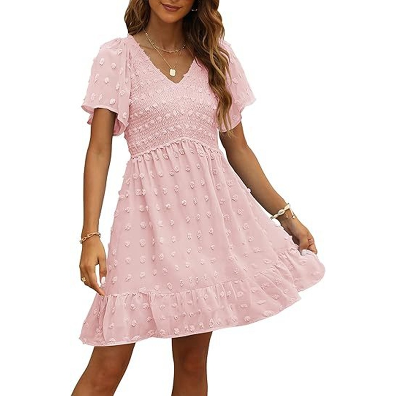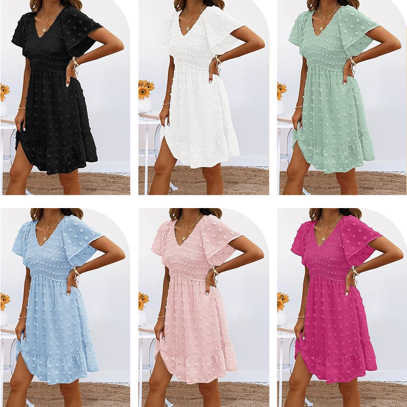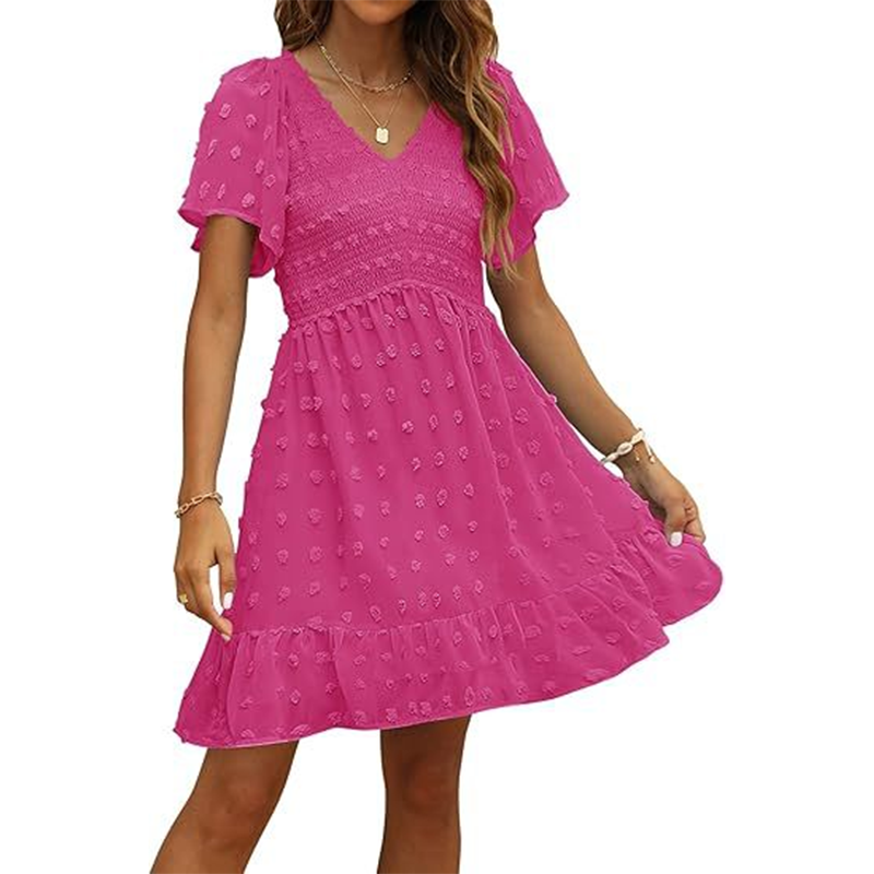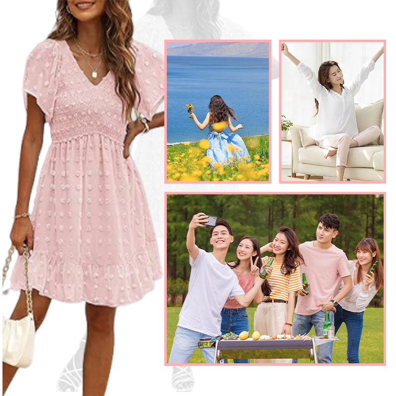 Package Includes:1*V-neck Slim Fit Short Sleeve Chiffon Dress
