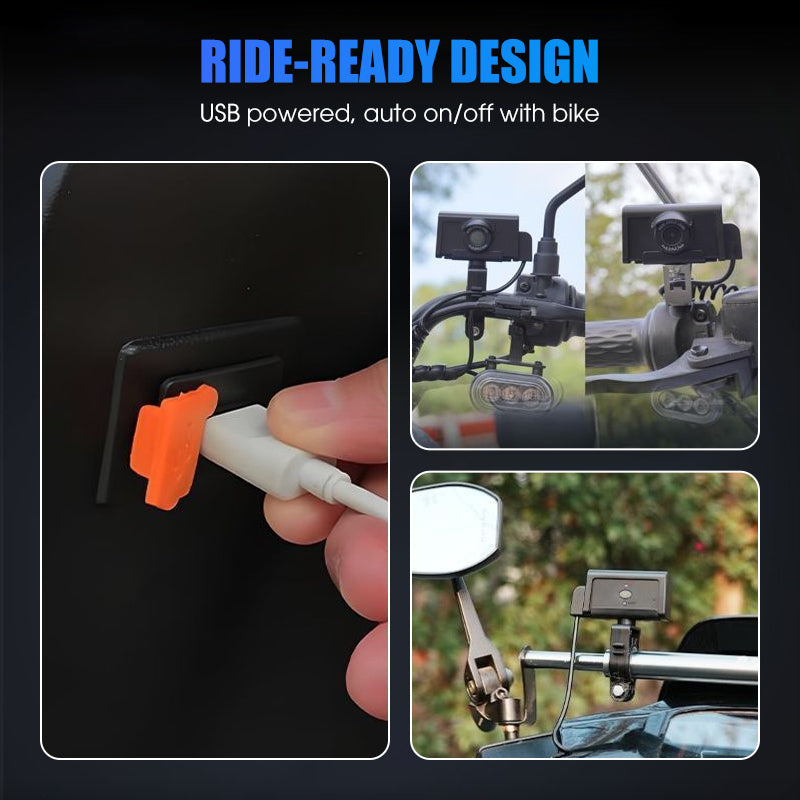 SMART POWER AND INSTALLATION: USB powered for easy plug-and-play setup. Starts and stops automatically with the vehicle. Mountable on rearview mirror or handlebar for flexible placement.