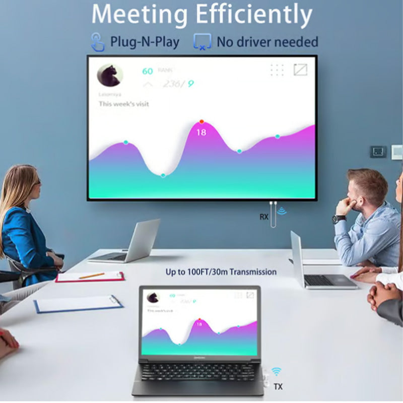 EXCELLENT DISTANCE TRANSFER PERFORMANCE: Experience reliable wireless transmission up to 50m. Designed for long-distance performance, ensuring stable screen mirroring and extending even in larger spaces.