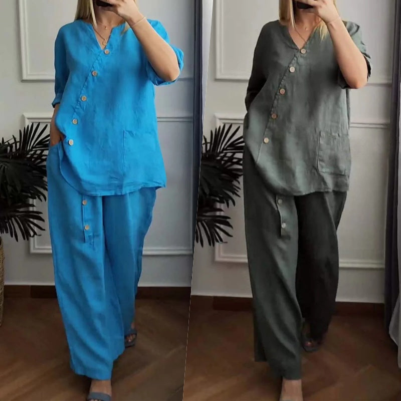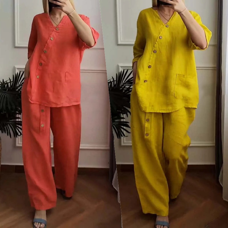 Women's Casual Loose 2-Piece Set with Chic Button Embellishment