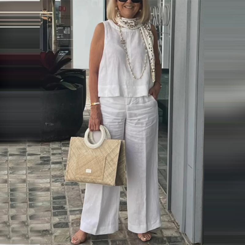 🥼👜Women's Simple Breathable Suit - Round-Neck Sleeveless Top & Wide-Leg Pants