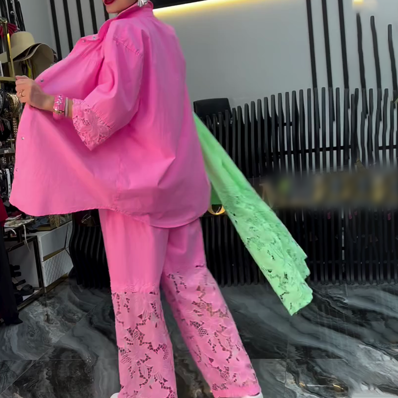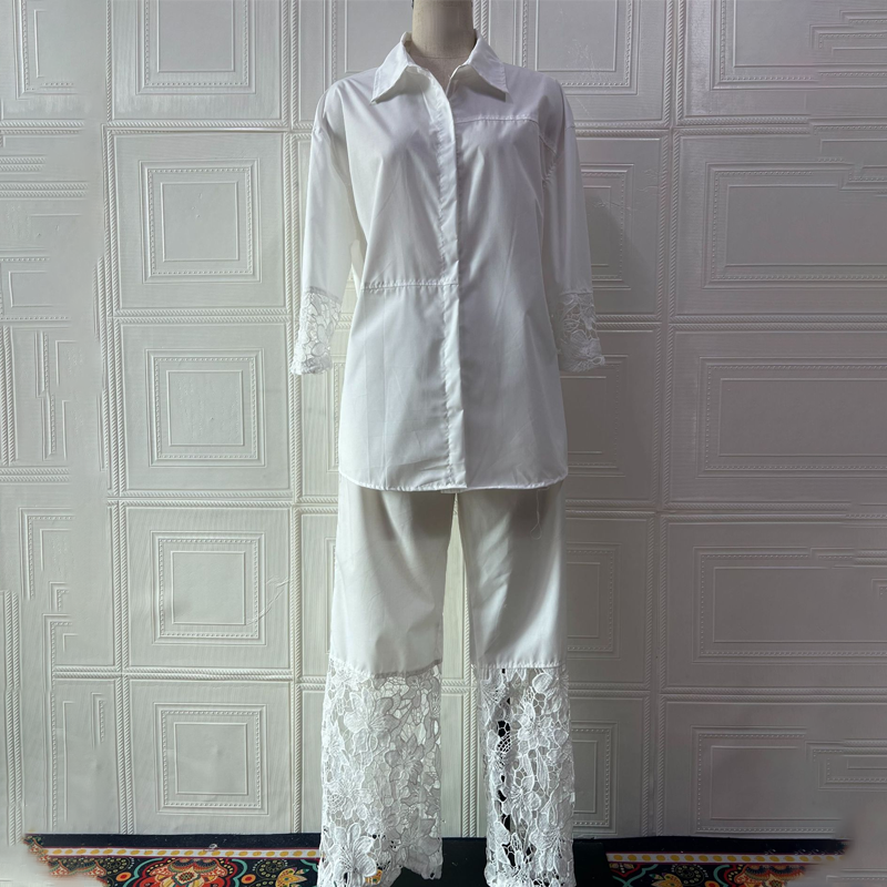 PATCHWORK LACE DETAILING: Delicate patchwork lace accents give the outfit a feminine touch, adding sophistication to your look. The lace design enhances the overall elegance and makes the set suitable for day-to-night wear.
