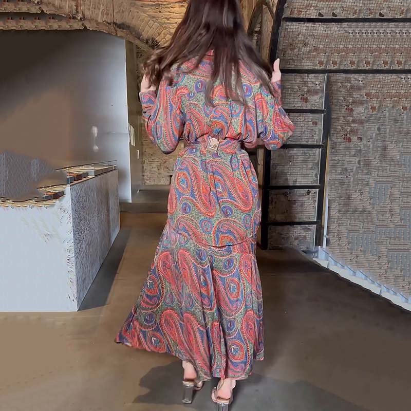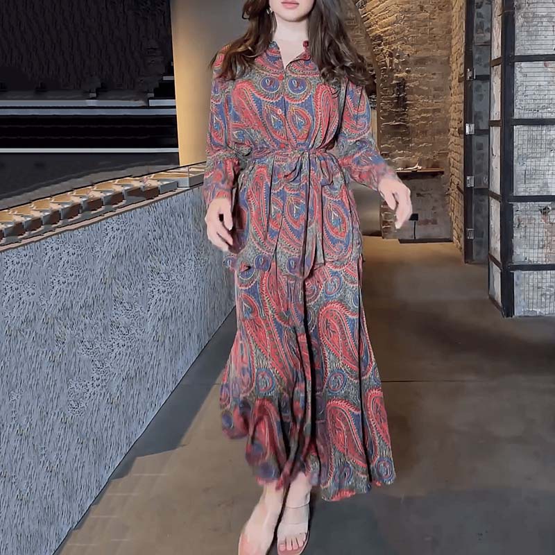 VIBRANT PAISLEY PATTERN: This dress boasts a stunning paisley design that blends rich colors and intricate details. The vibrant pattern adds a touch of bohemian elegance, making it perfect for both casual outings and special occasions.