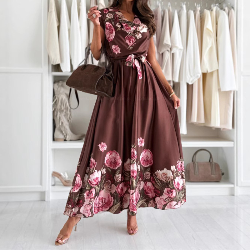 Package Includes: 1* Women's Elegant Printed V-Neck Dresses