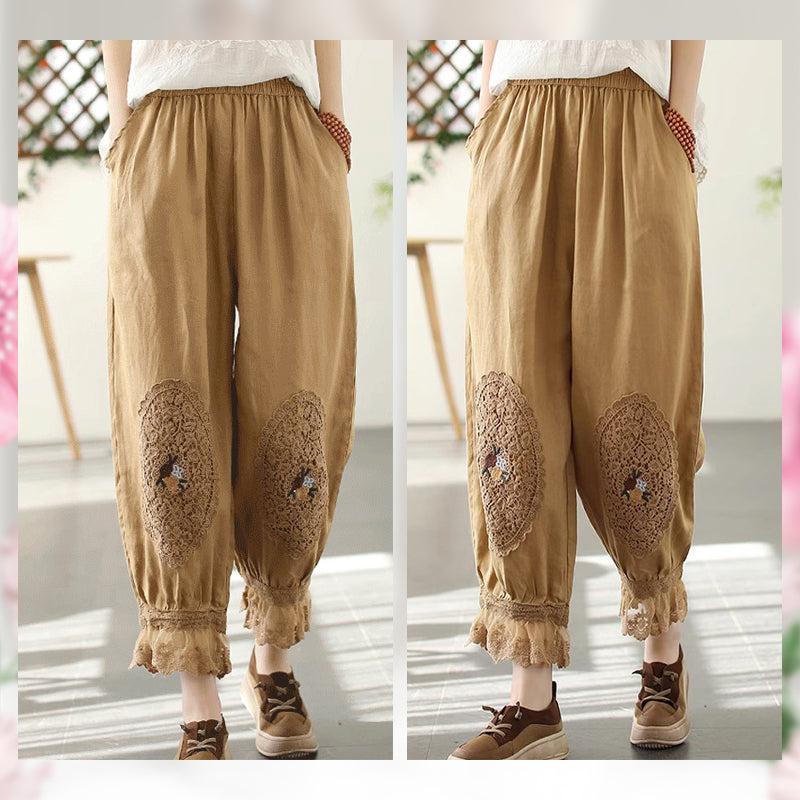Women's Lace Embroidered Linen Cotton Bloomers Pants