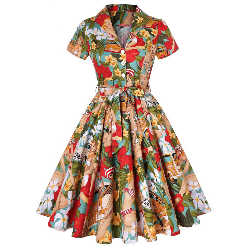 Package Includes: 1 * Women's Printed Lapel V-Neck Long Dress with Belt