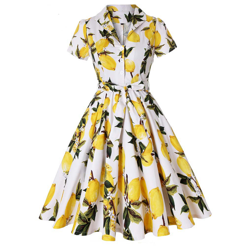 🍋New Summer Mood💛Women's Printed Lapel V-Neck Long Dress with Belt