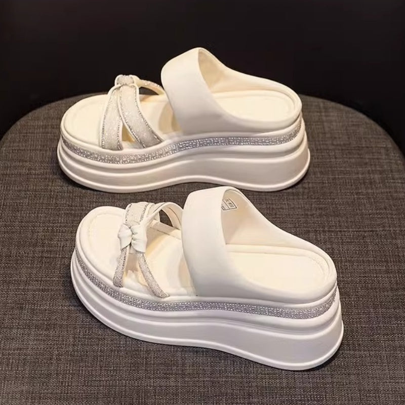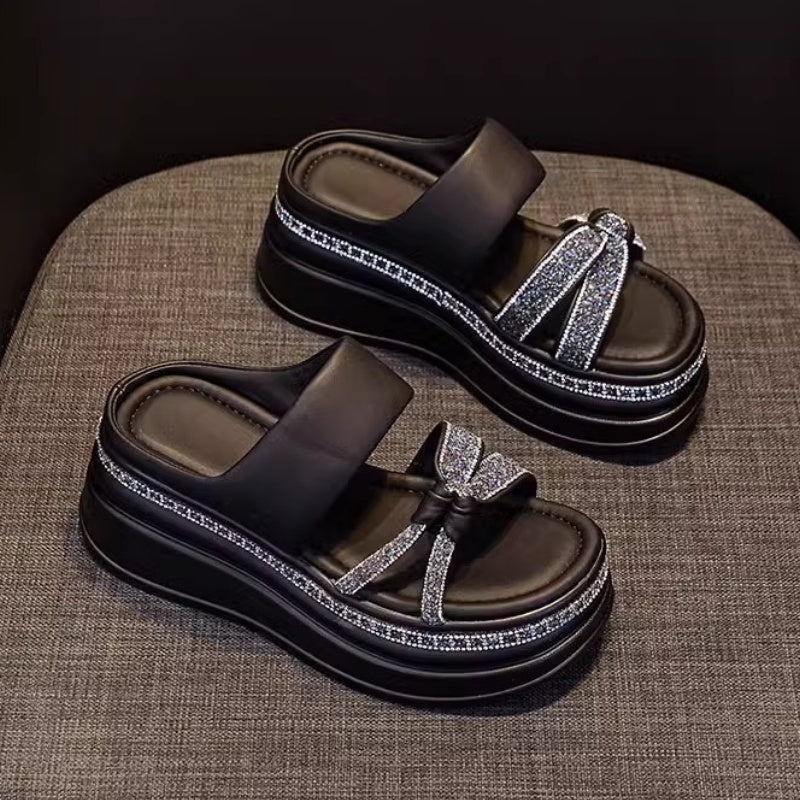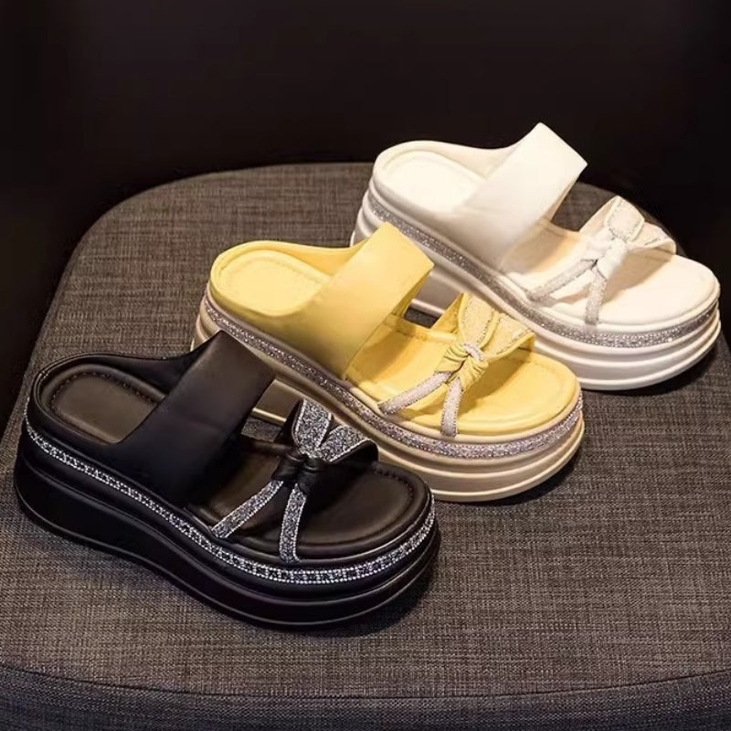 🌺Fashion Height Increase👡Women's Rhinestone Thick Platform Slip-On Sandals