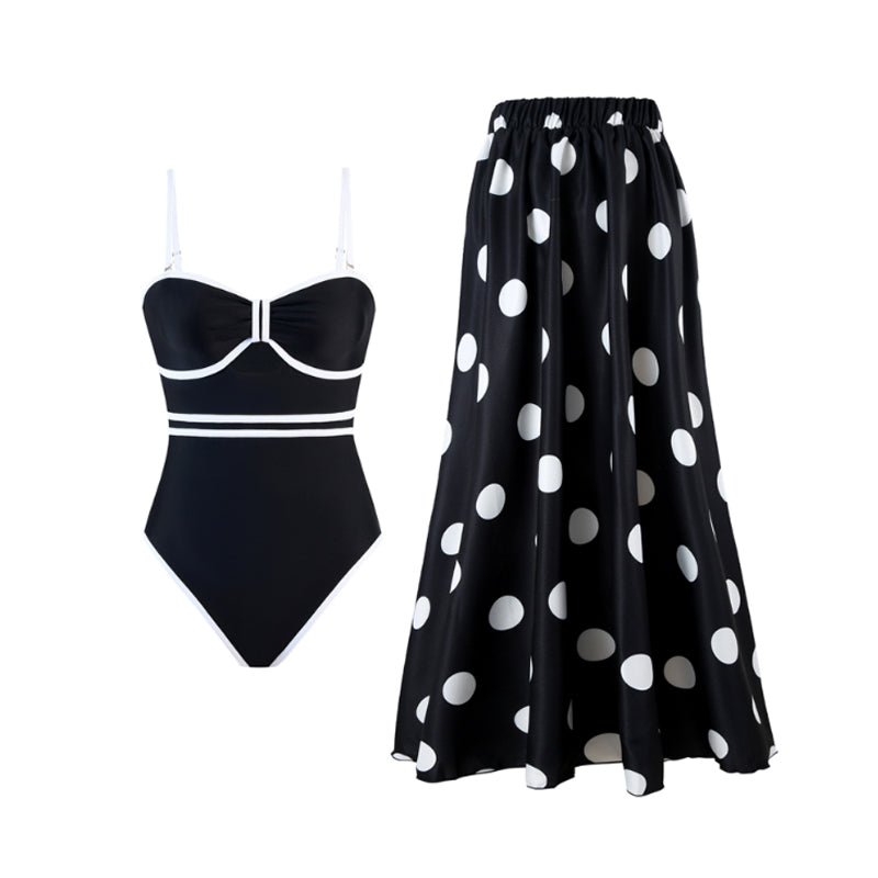 SKIRT EYE-CATCHING DOT DESIGN: The matching skirt features a bold polka dot pattern that elevates your style for a modern, chic look.