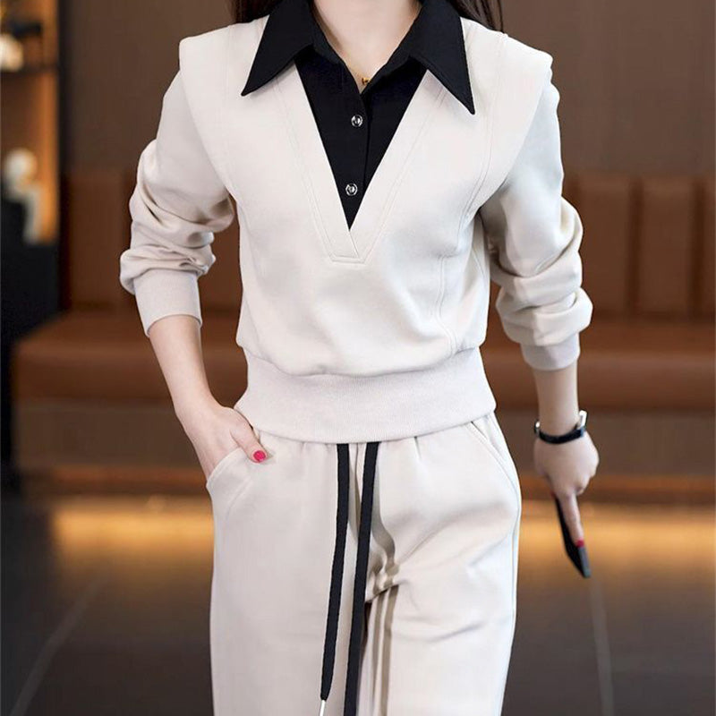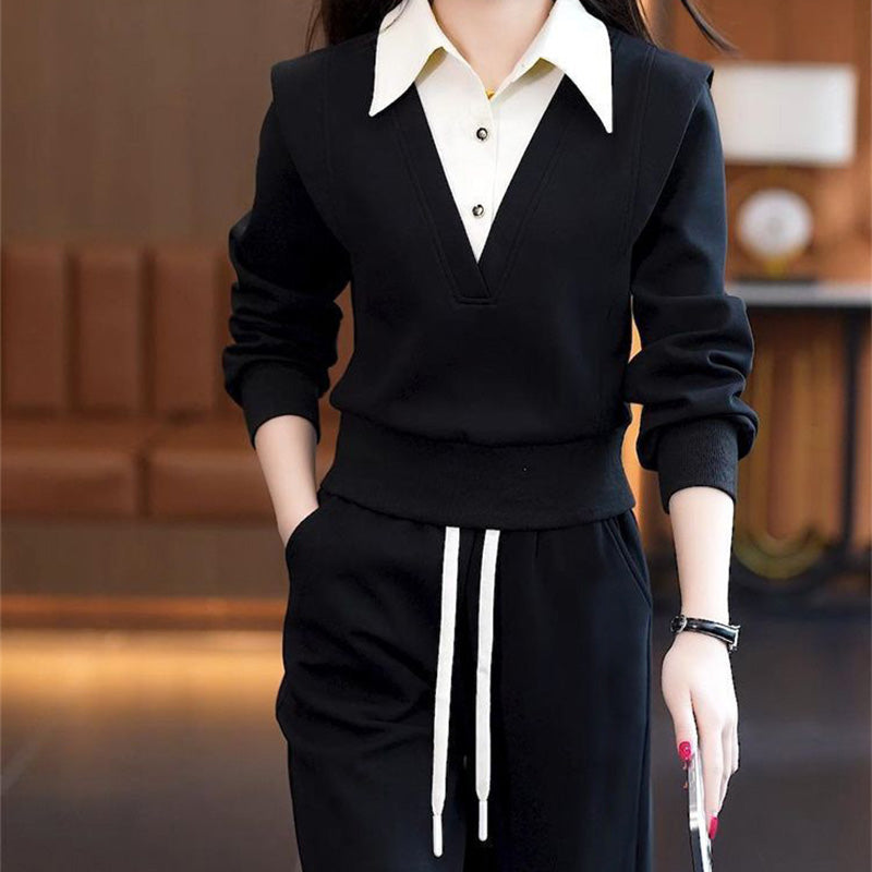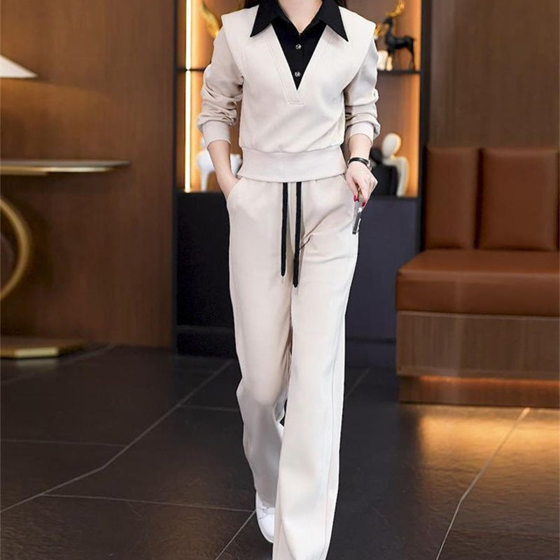 🔥2025 HOT SALE 🔥Women's Shirt Collar Top & Drawstring Bottom Set👗