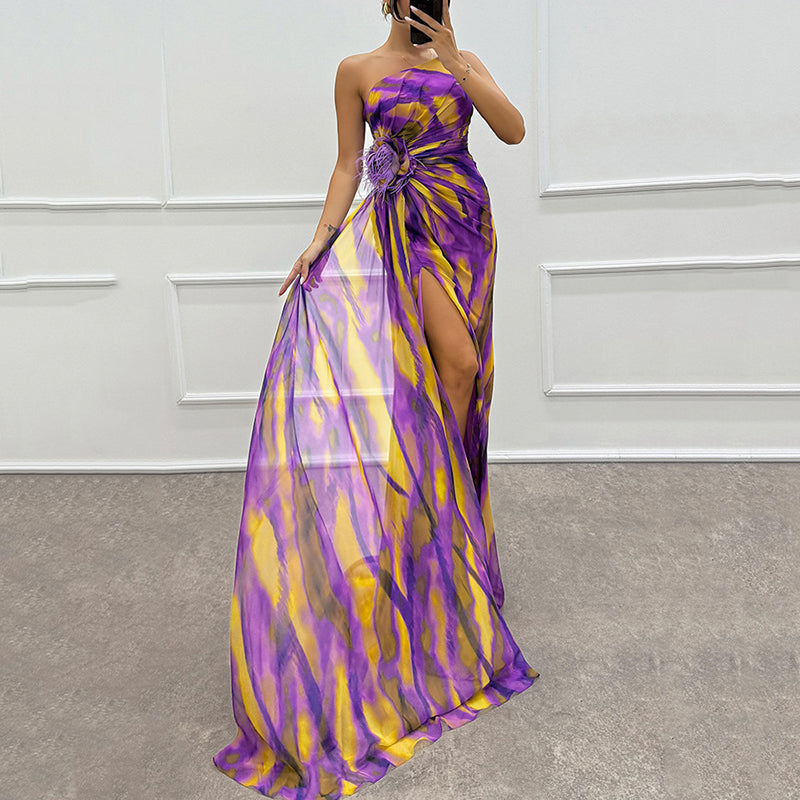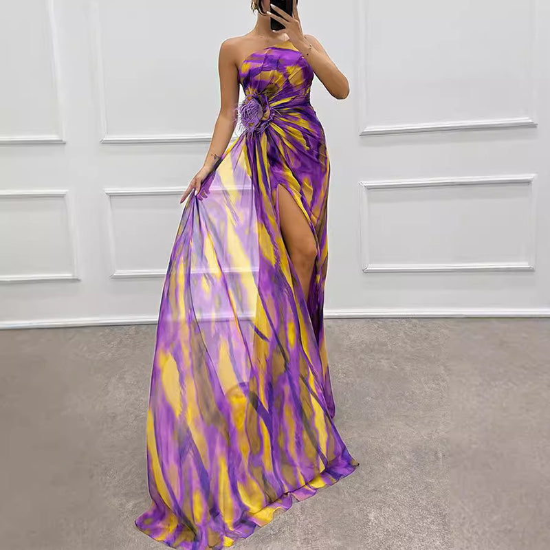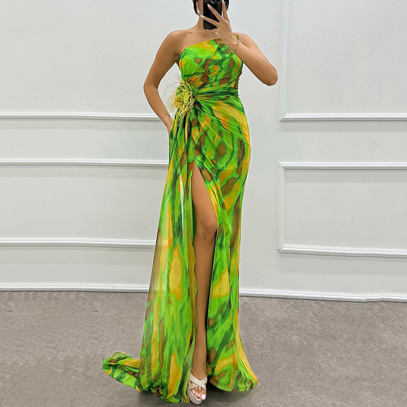 Package includes: 1 * Women's Vibrant One-Shoulder High-Slit Maxi Dress