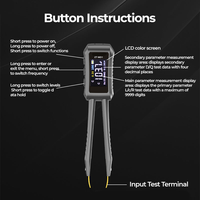 ZT-MD1 Mini Digital Tweezer LCR ESR Tester